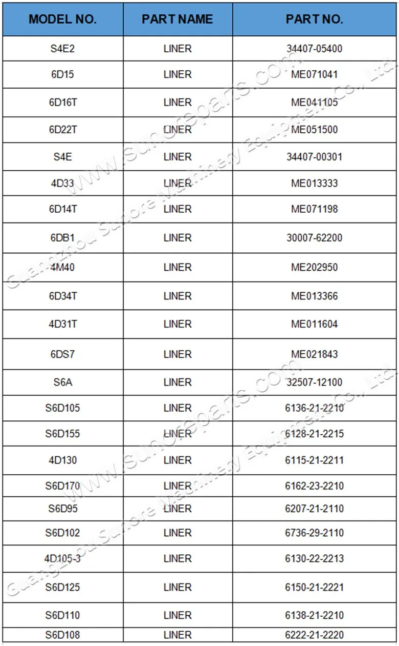 We can provide such a wide variety of Liner Kit as belows: