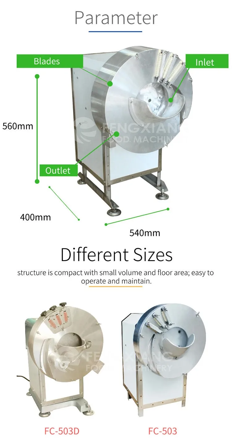 1. FC-501 is suitable for cutting Coconut, Banana, ginger, bamboo shoot, carrot or other materials into pieces or strips.