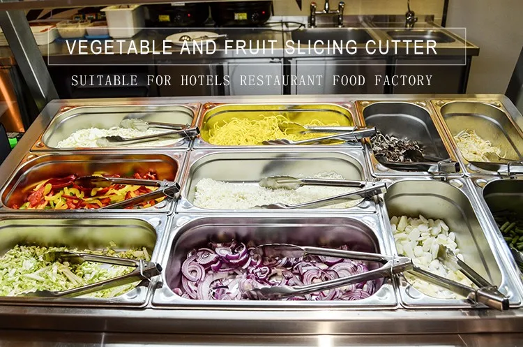 This product can process both vegetables and fruits, and it can produce slices and shreds of different sizes