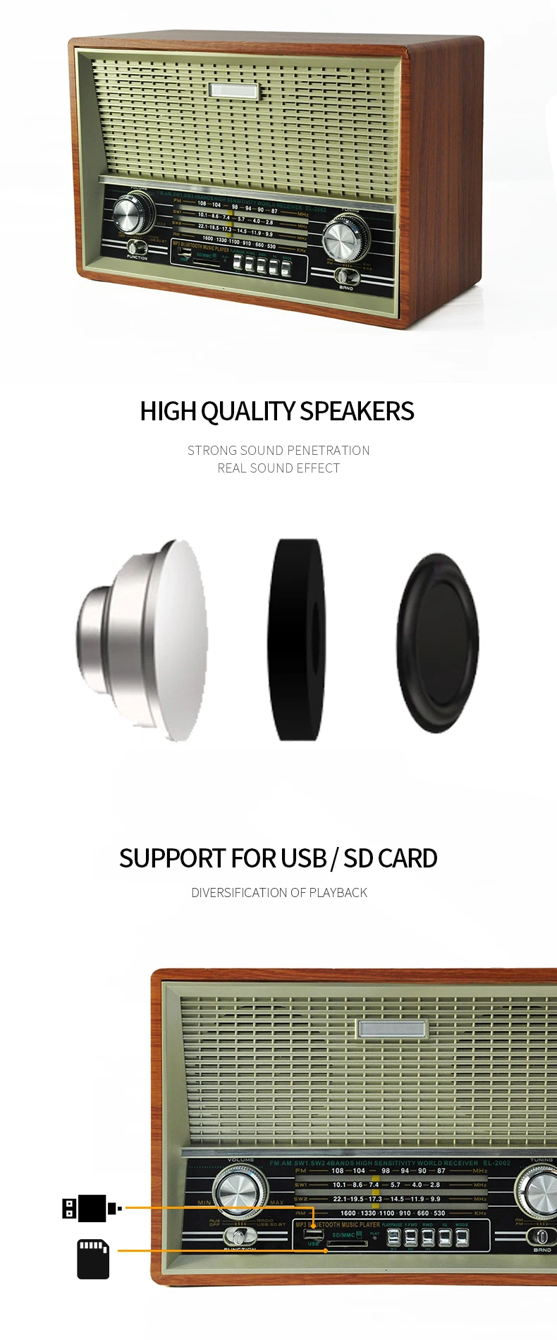 Features | 1. With USB/SD MP3 Player 2. With Radio cassette 3. Built-in High Quality Speaker 4. Built-in Micphone 5. With Earphone Jack 6. High Sensitivity Antenna 7. High Performance IC 8. With Handle |
