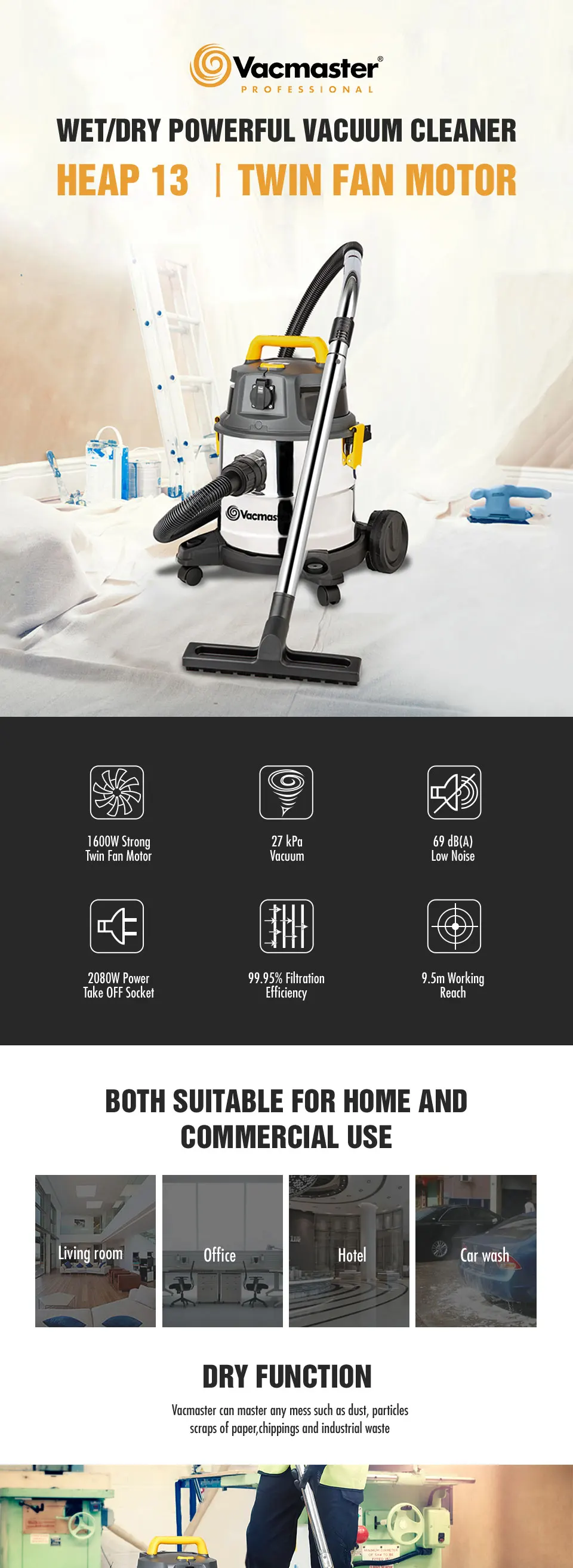A1: We are the biggest wet & dry vacuum cleaner factory in China over 16 years. Our brand Vacmaster has been awarded as the most innovative brand in North America. Pls review our website for more product information.