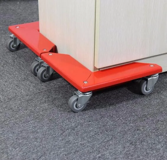 The corner movers for furniture transport is a set of 4 pressed steel triangle shaped dollies with a capacity of 600kgs. designed to move awkward rectangular loads like desks and cabinets. To use in one set (4pcs) together, give mobility in locations where normal equipment for such handling cannot be used.