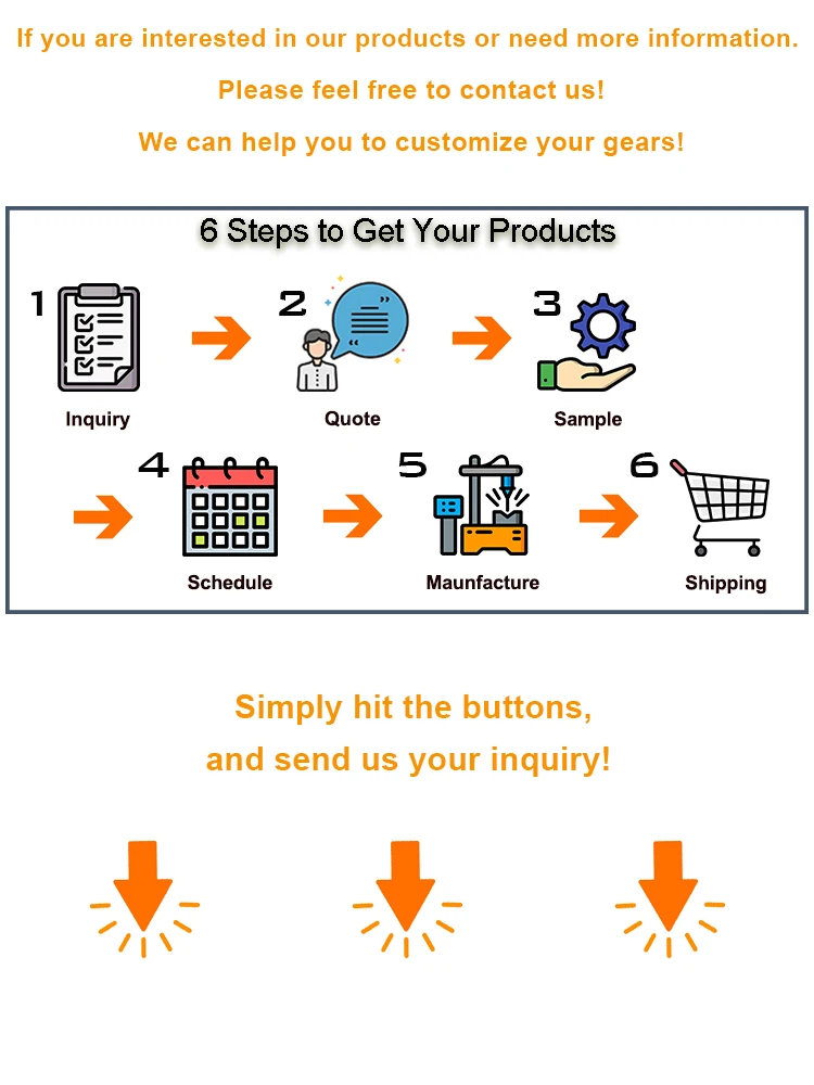 OEM / ODM / OBM | 1. Manufacturing according to customer's requirement. 2. Providing custom gear design or gear product optimization. 3. Supplying professional business communication service. 4. Support Developoment and Reverse engineering service. |