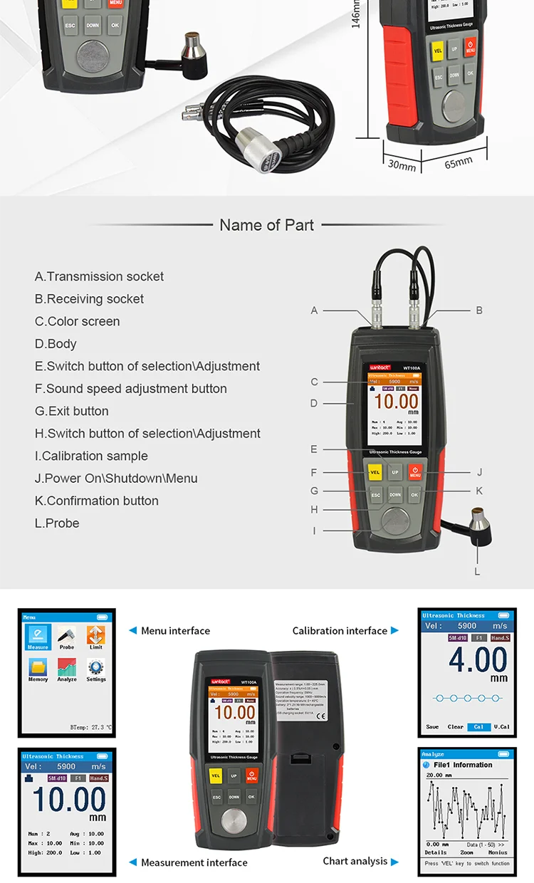 | Product name: | Ultrasonic Thickness Gauge; | Data storage: | 500; |