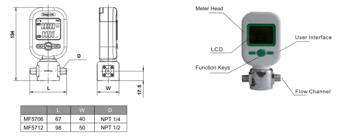 MF5700 Series Mass Flow Meters feature cost effective ultra low power operating on 4 AA batteries. The portable design has excellent exchangeable mechanical adapters, easy data accessible and user programmable capabilities. The internal data storage can also help for many industrial on-site applications. The meters can be customized for various general purpose flow applications.
