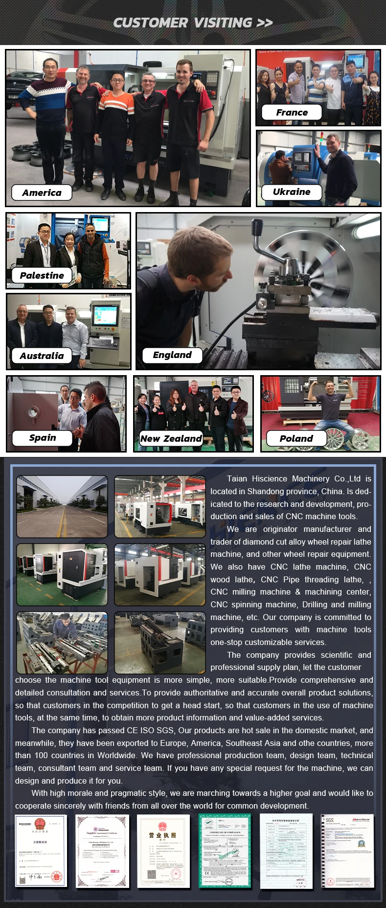 Our company developed the vertical wheel repair lathe. The machine covers a small space, can be designed to meet different space request. The 2 axis of wheel lathe adopt the most stable gantry structure.The structural body is made of cast iron and resin sand casting. The Z axis is driven by four linear guides, double ball screws and double servo motor. Meanwhile, the counterweight is used to balance the z-axis with a large load bearing capacity, which effectively ensures the influence of the two axes due to different stress structures. The cutting feed in the process of wheel repair can keep sensitive control response and achieve the perfect alloy wheel repair effect.