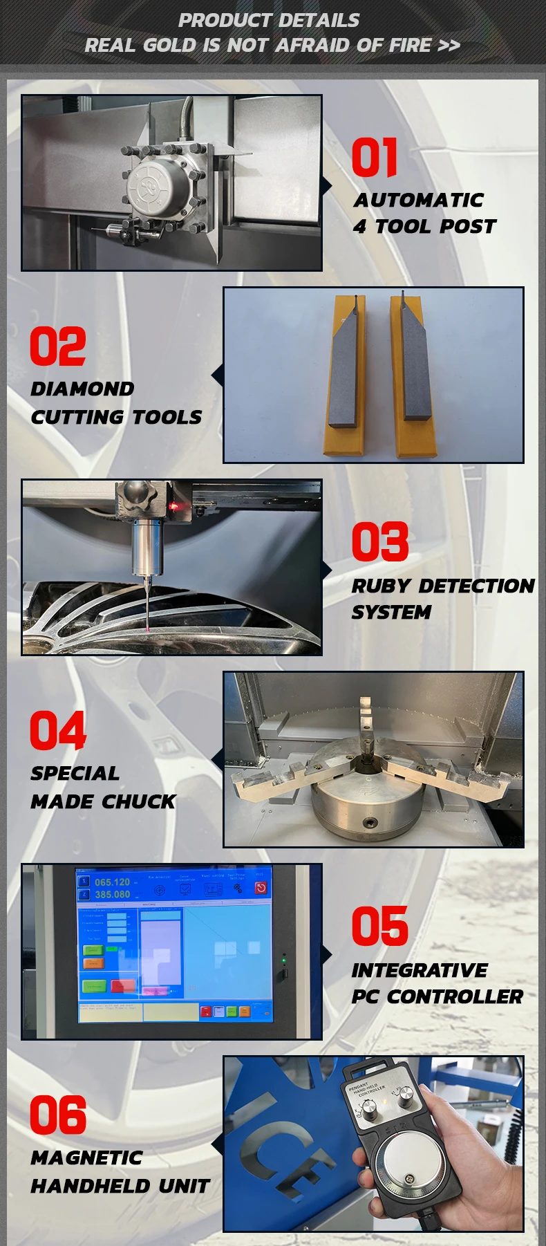 l The gantry structure can ensure perfect wheel repair effect from the center to the edge;