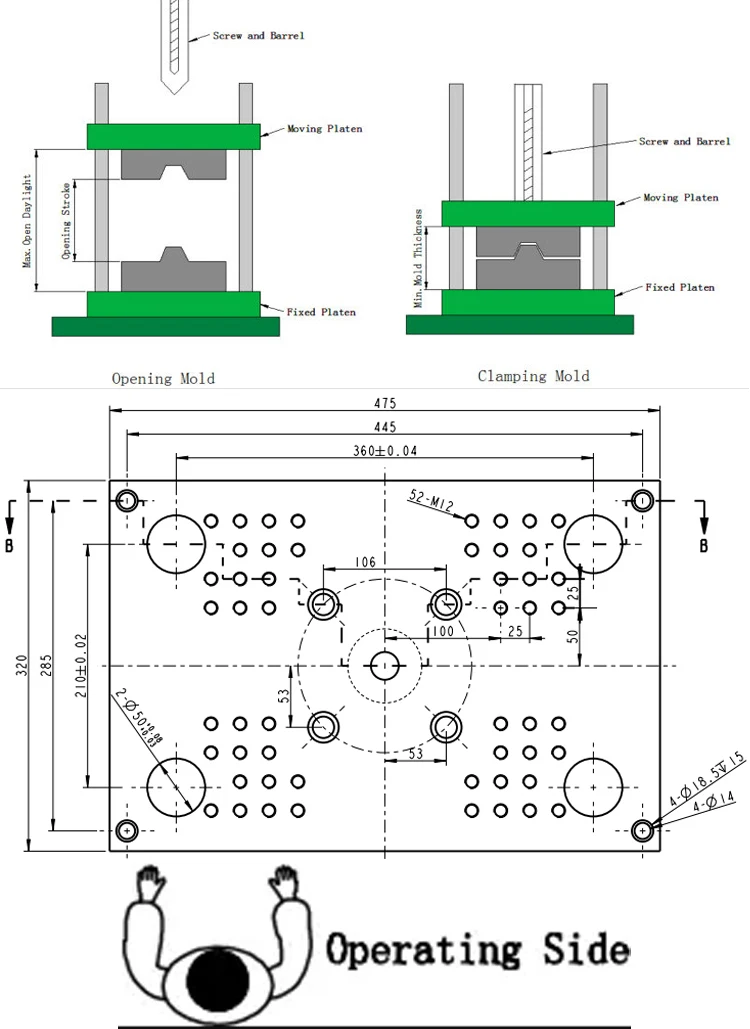 | Open Stroke(mm): | 185 mm; | Injection pressure: | 1019/896kg/cm2; |