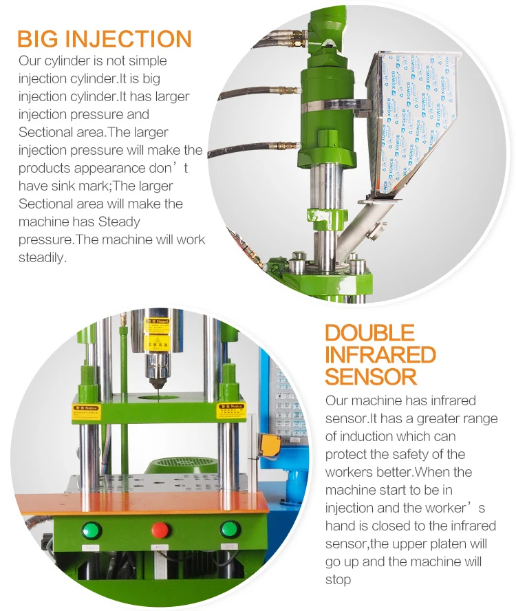 Vertical injection machine have the advantage of low noise, low energy consumption,high efficiency and long life time, it's widely apply to produce various terminal blocks, household appliances, consumer electronics, power tools, automotive dashboards, medical devices, open containers, connectors, cables,auto parts, Plug ,etc.