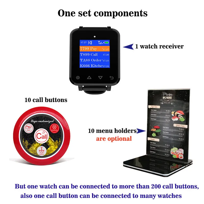 | MOQ: | 1 Set; | Product name: | one watch and 10 call buttons; |