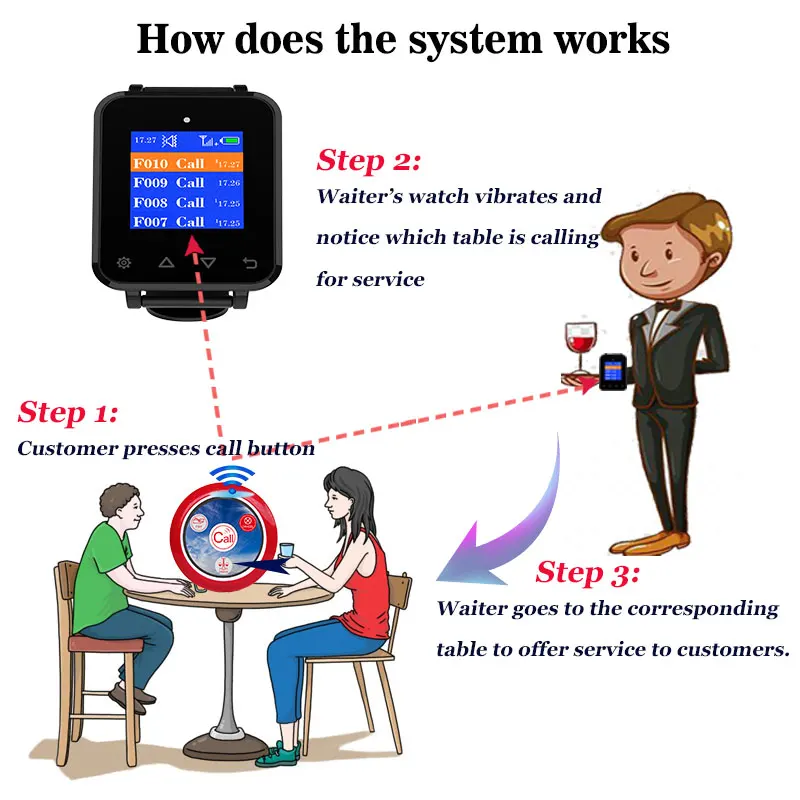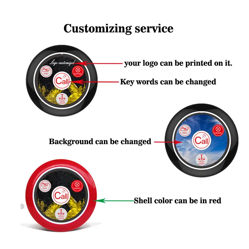 Wireless calling system can be used in restaurants, hotels, hospitals, health clubs, beauty salon, spa center, bars, swimming pool, beach, hawker centers/Club/Bar/drink shop/juice shop/milk shop/ tea house/Bathroom, apartment, clubhouse, disabled school,