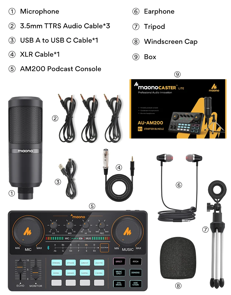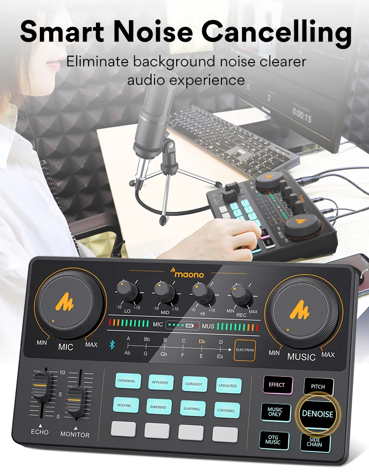 1. Maonocaster Lite AU-AM200 is an all-in-one mixing console designed for live streaming, podcasting, and song recording.