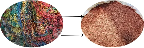 Due to plastic and copper has difference in density.Through vibrator and suction together.Finally the copper granules comes out from front side, the plastic comes out in other side.