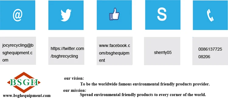 Our company aims at provide the most superior service for clients, serve the higest quality products to customers. we have many years' experience in recycling machine field, and we always insist on the realize of environmental to develop our business. we have been more than four years experience abou foreign trade in Alibaba international website. At the same time, we have accumulated many superior quality customers from all over the world and we will always hold on in this way to serve customers and reback society.