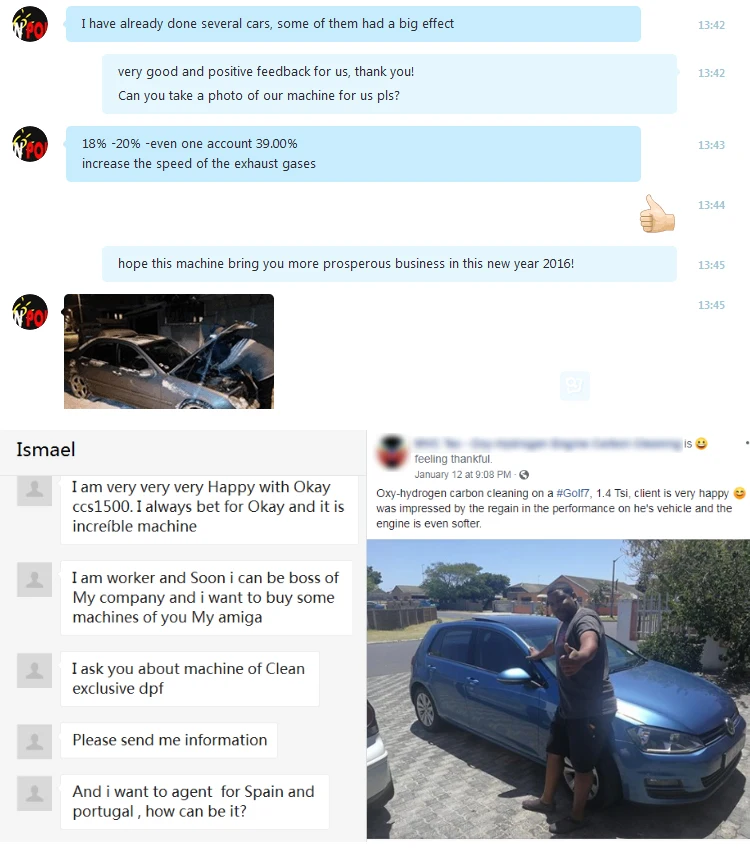 After using OKAY hho gas car engine carbon cleaning machine,carbon build-up is completely cleaned away,engine efficiency is increased,power and performance are restored,life expectancy is improved and engine emissions are reduced. The accelerator becomes light, horsepower is increased.