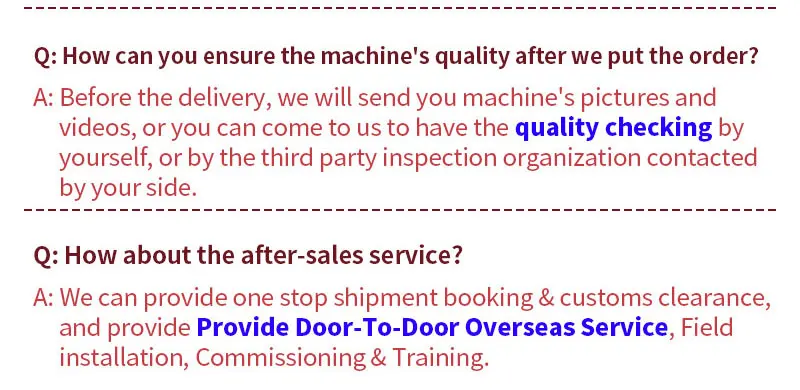 | After-sale Provide | Engineers Available To Service Machinery Overseas | ||