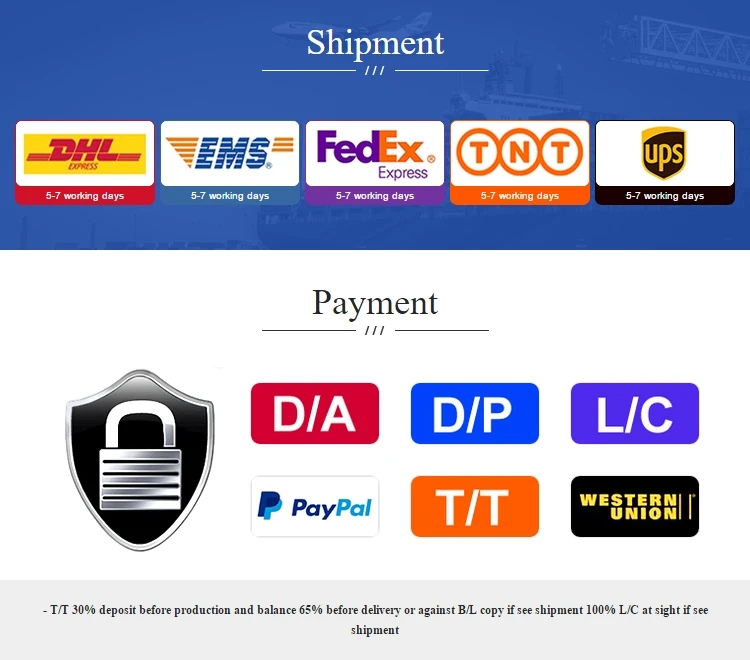If it is a spot, we need to receive the full payment before they can be shipped; if it is an order, then according to the prepaid 30%, the remaining 70% of the payment before the contract to sign the contract.