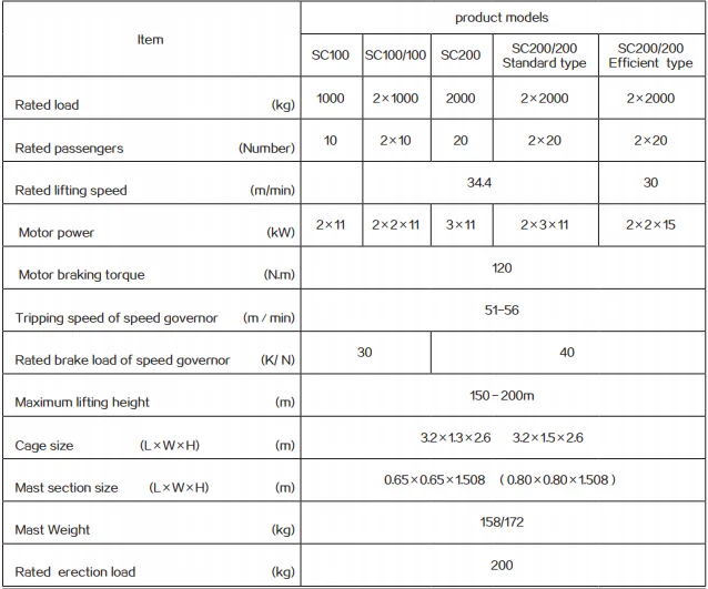 SC200Z | 2000kg | 0-60m/min | 2×23kw | |