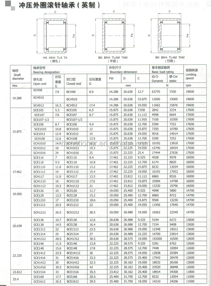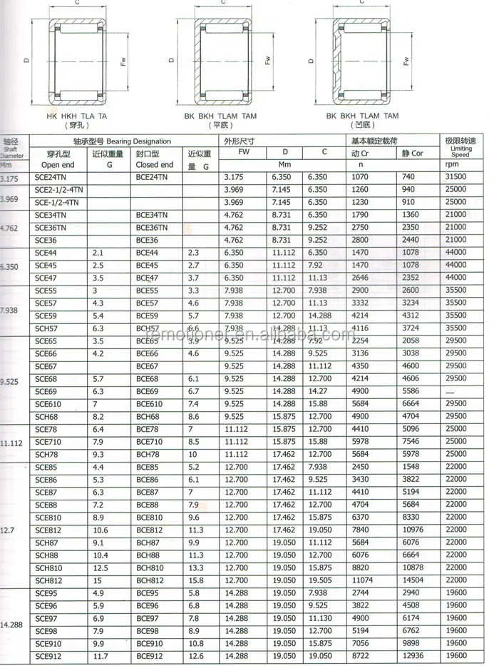Specific Technical Datas of SCE96 Needle Bearing for Your Reference,