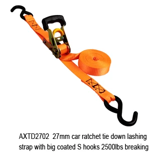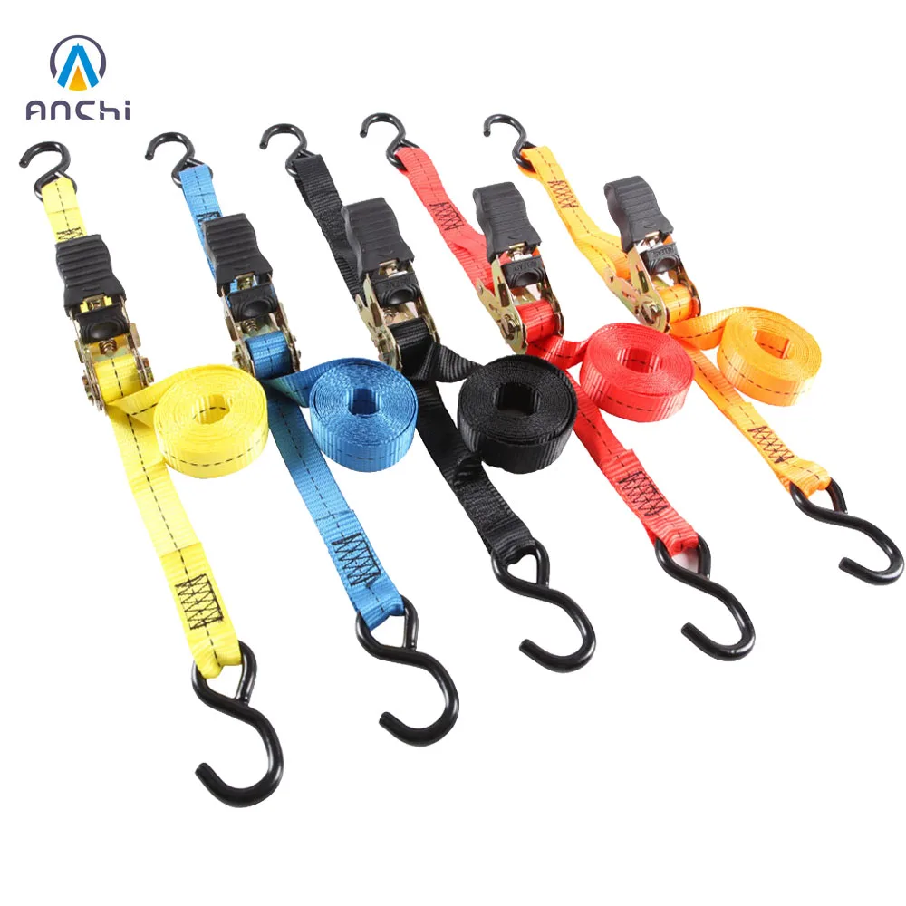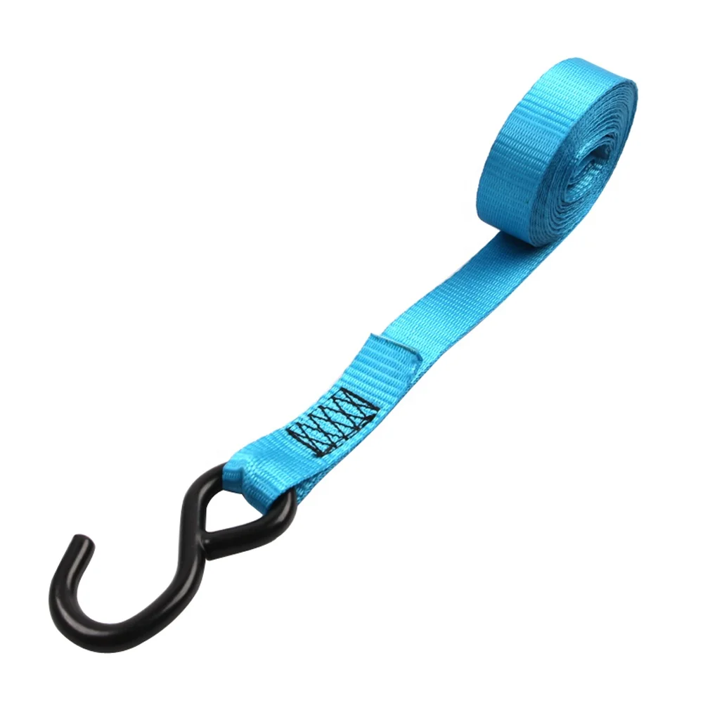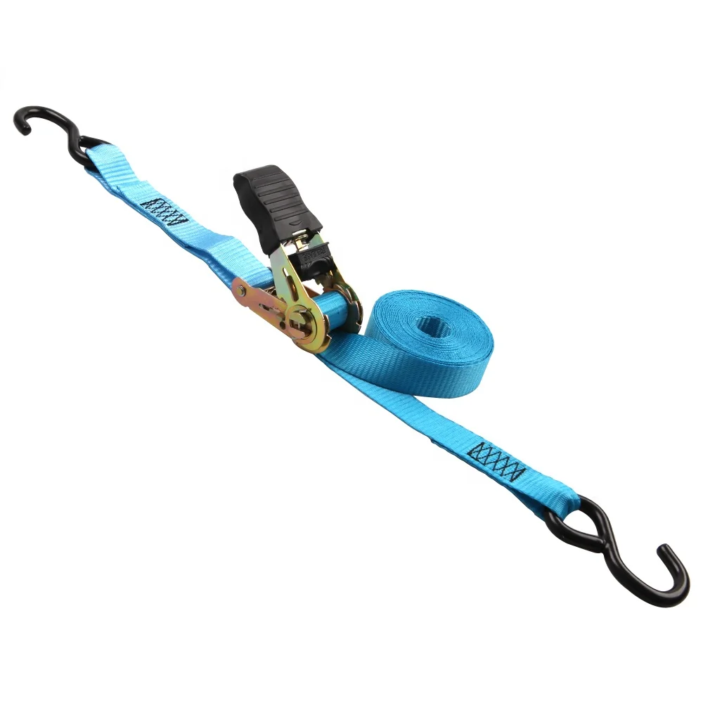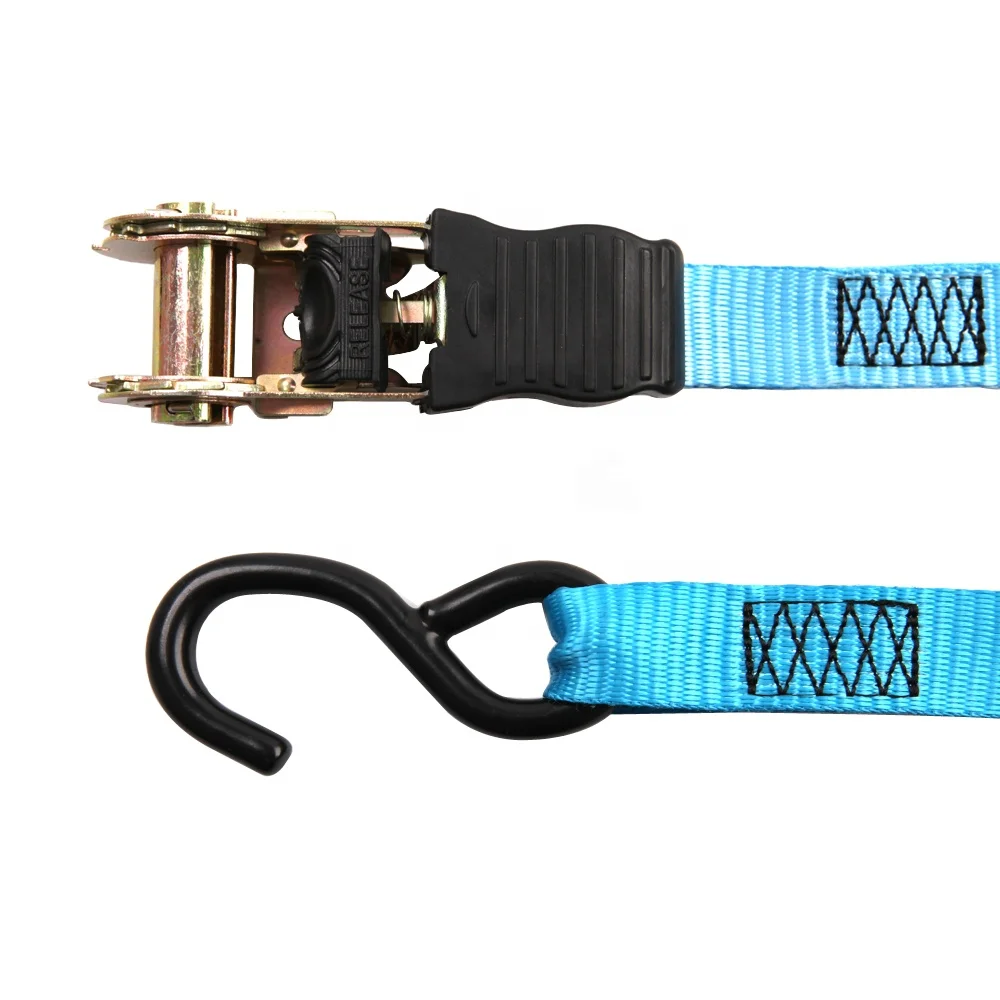 1" 25mm wholesale cargo lashing ratchet tie down strap with wide rubber handle and coated S hooks 1500lbs 10ft