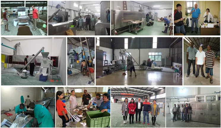 Our main products line include food extrusion machine, soya meal/meat processing machines, industrial micro wave oven, packaging machines, rice cake machine etc... Most importantly, we also provide formulas, technology supports, machine inspection service, etc^..