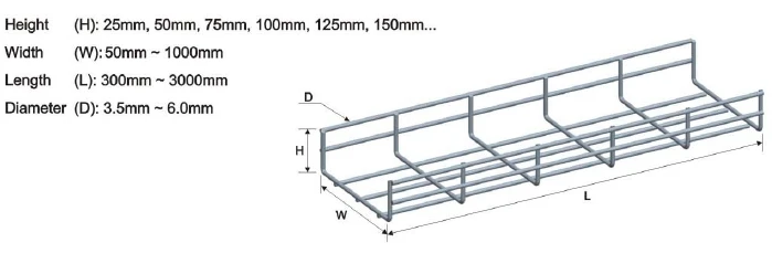 Wire cable basketss are constructed with a 50mm x 100mm, 50mm x 50mm, and 40mm x 40mm mesh grid.