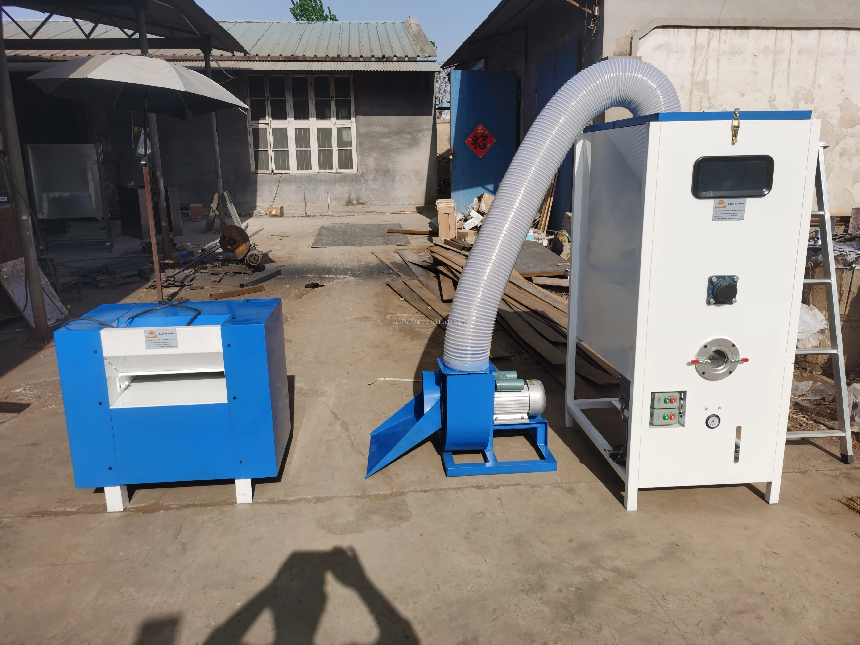 *Its biggest advantage is loose cotton opener to complete a one-time, simple operation,just put onto the machine conveyor cotton fiber can be automatically sent to the cotton into the machine to protect the operator safety, and comb out loose fluffy cotton reached, the product flexible, look fuller, better elasticity, saving the amount of cotton.