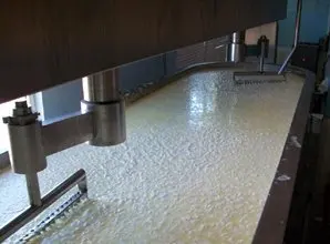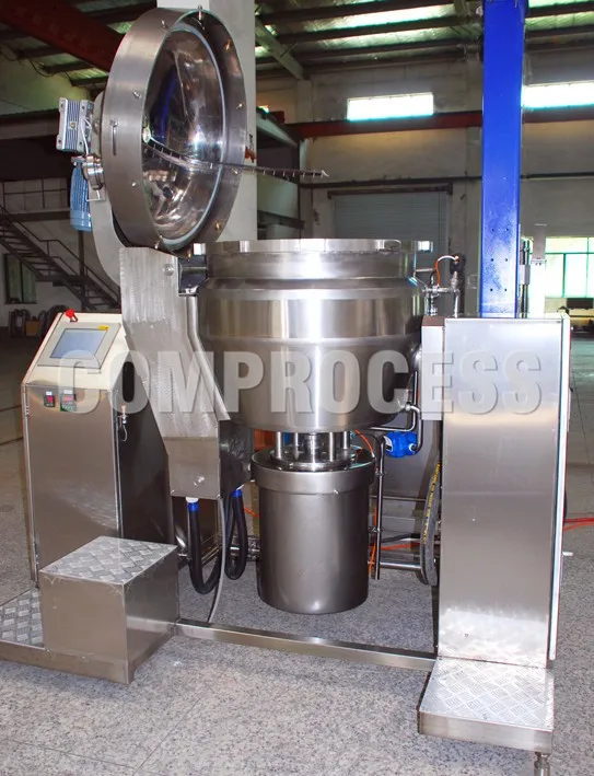 The machine can be produced spread cheese, processed cheese or any pastry fillings. Put the raw materials or cheese block and other formula materials into pot, then they are cooked by steam, cut and mixed by high speed knife. The final product is formed as a thick liquid when it is hot.