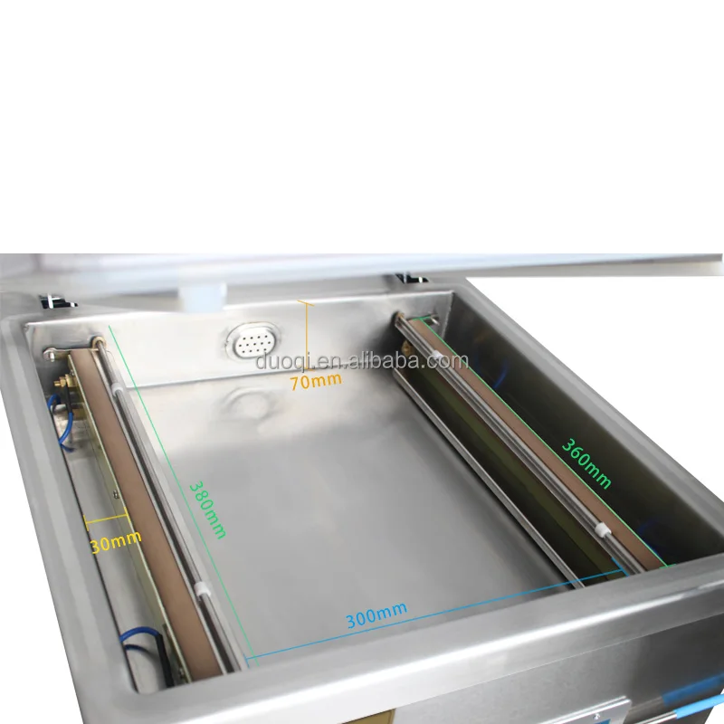 Description: 1.DZ-360 is featured by processing of vacuuming, sealing, cooling, which is used in vacuum packaging for the food, pharmaceutical, aquatic, chemical and electronic industries.