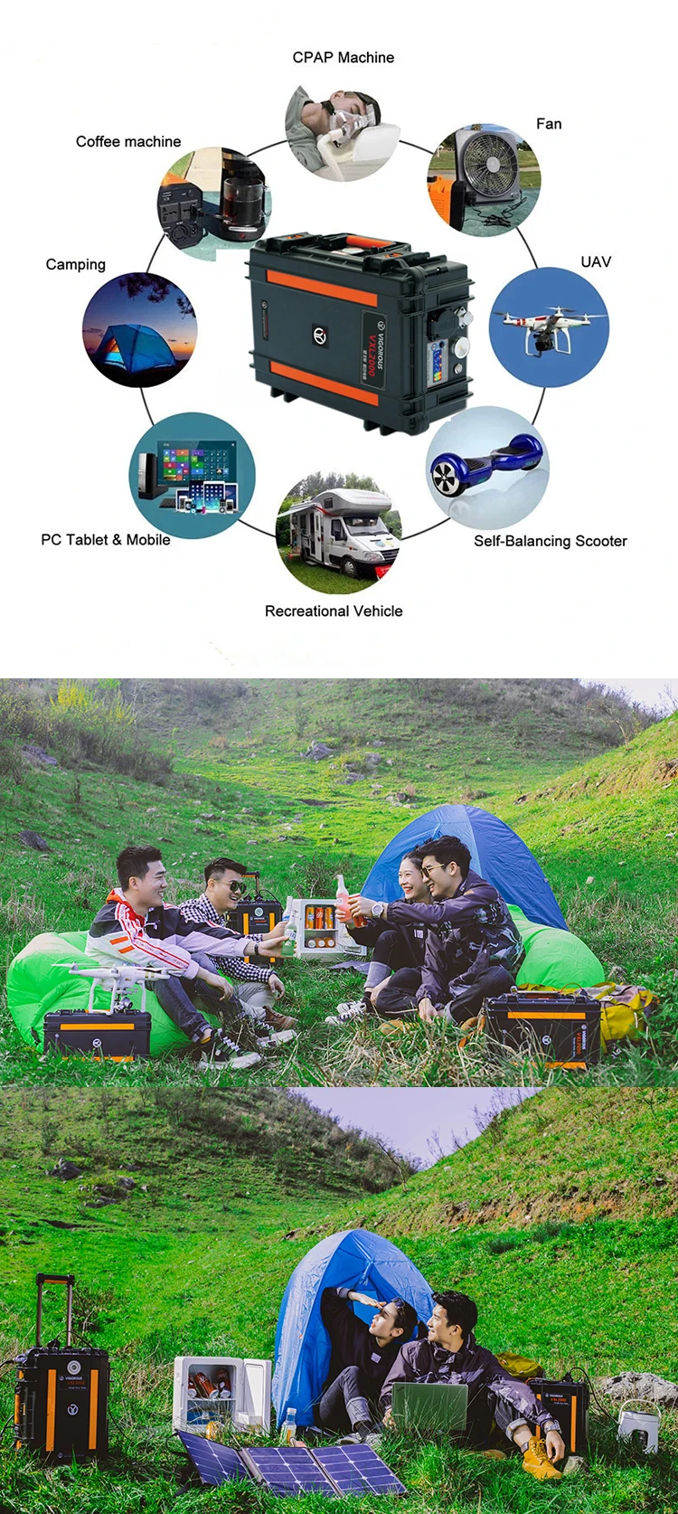 2000Wh Portable Power Station Rechargeable 48V/40Ah Lithium Battery Pack for Outdoors Camping Travel Fishing