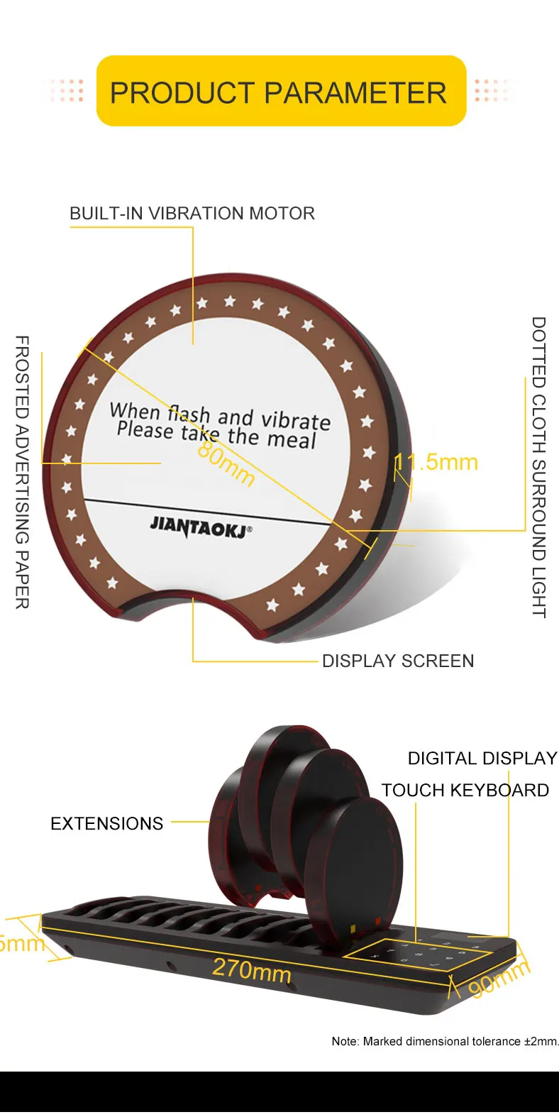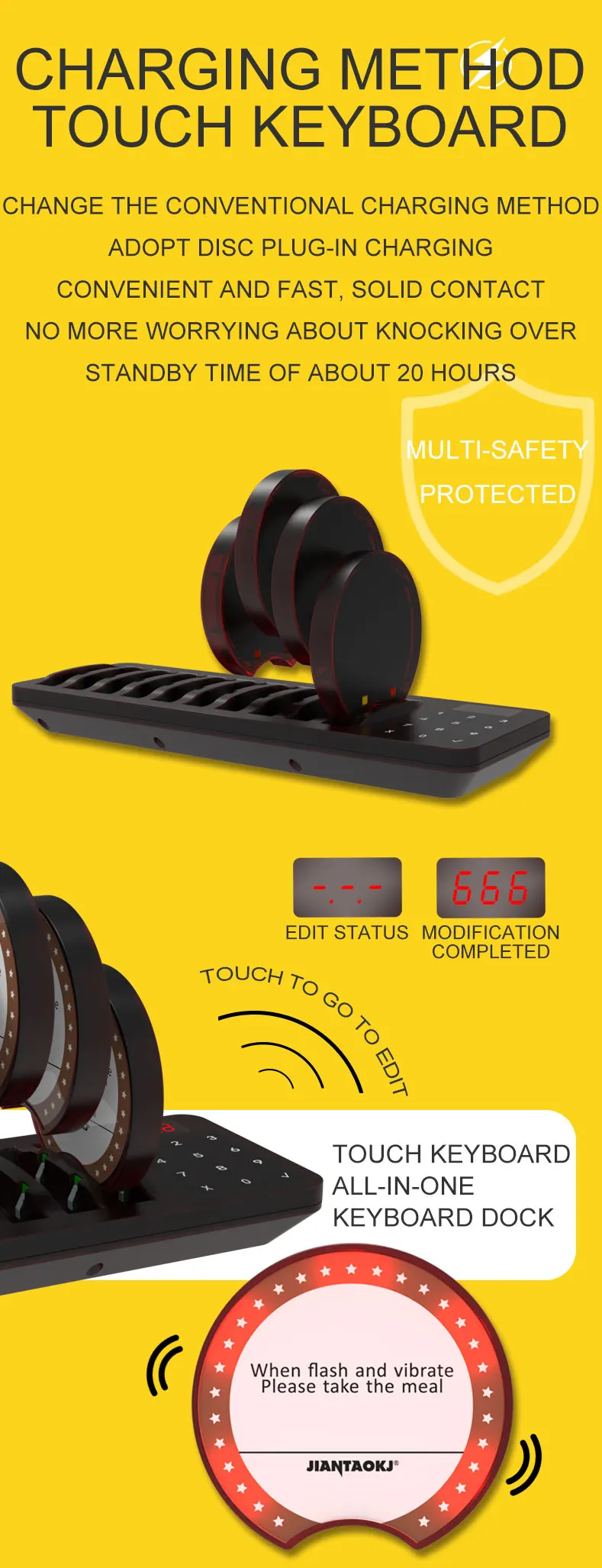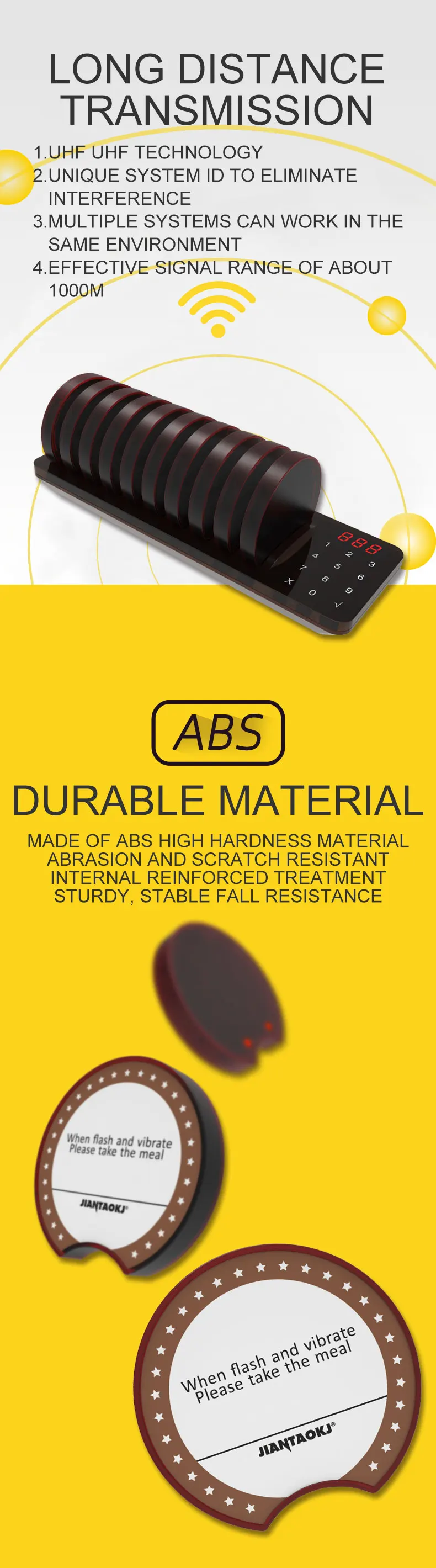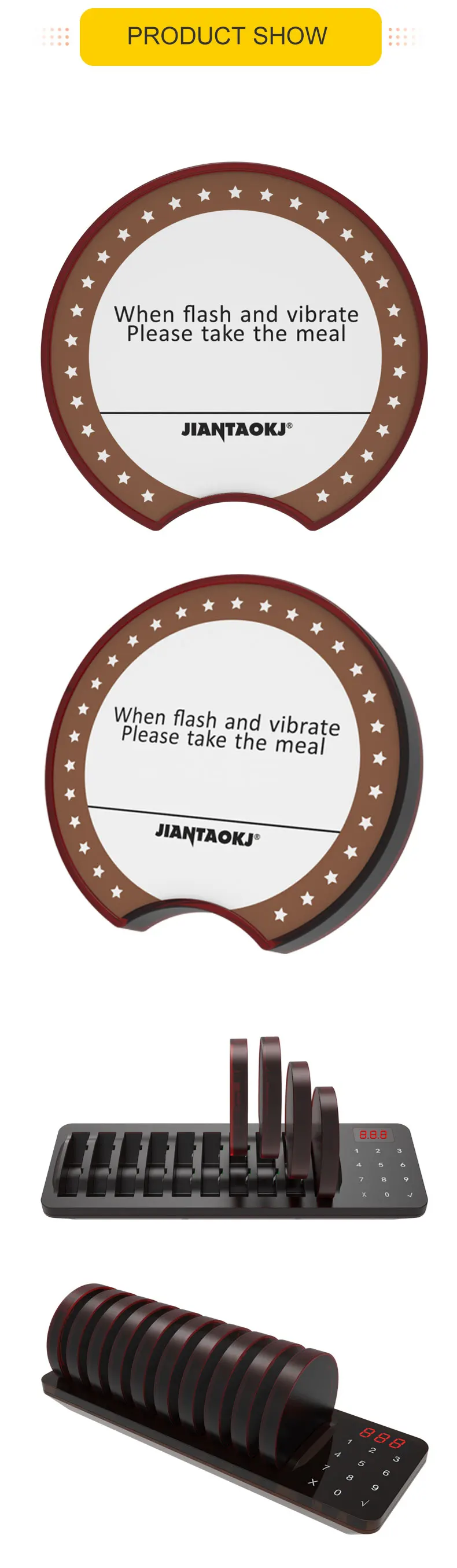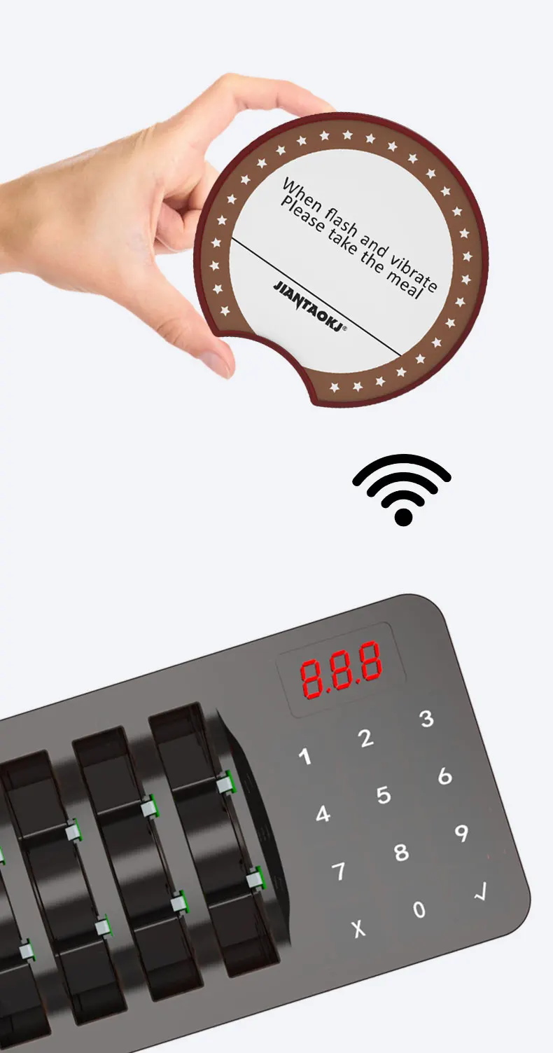 | Brand: | Jiantao; | Product Name: | Waterproof Wireless Restaurant Guest Paging System Coaster Pager; |