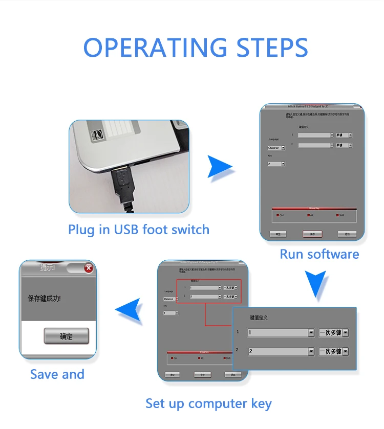 USB Foot Switches can be used as an additional input device for the computer. They also provide a more comfortable and convenient way to work. The USB Foot Switches are available in a single, double or triple version and can be freely assigned any key by the supplied software. No drivers are required, just plug in and go.