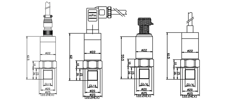 G1/2, G1/4, NPT1/4, 7/16-20UNF, M20×1.5 |