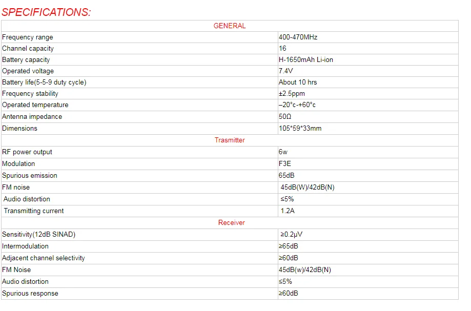 2) Frequency: 400.00-470.00MHz