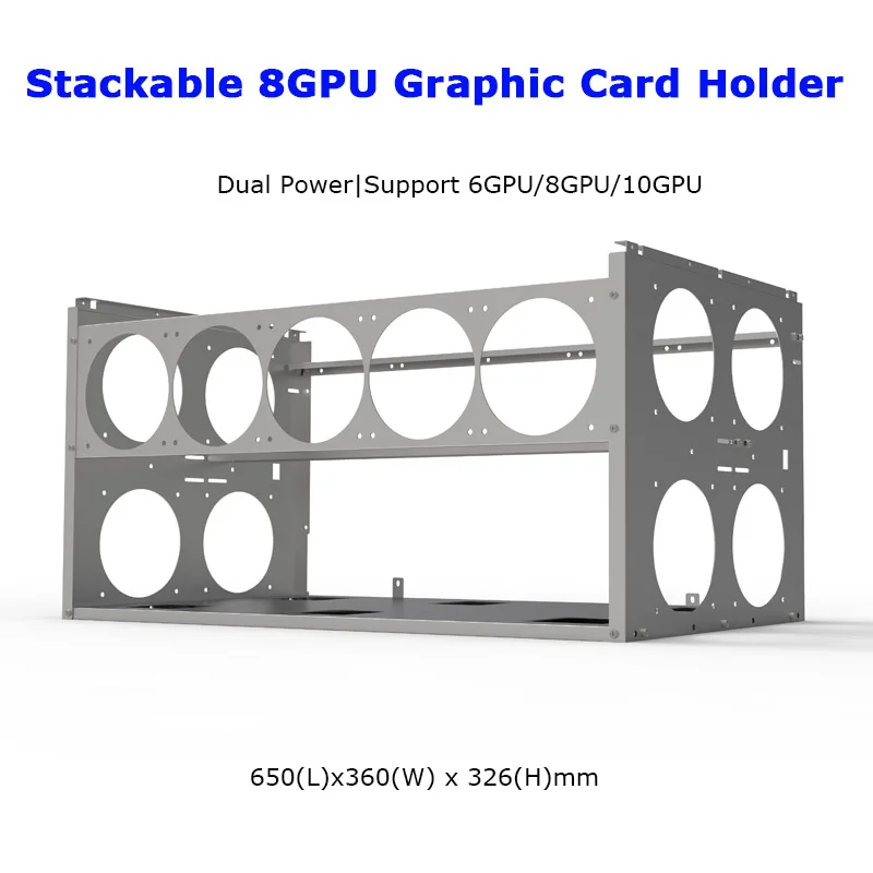 | Type: | 8GPU stackable rig case,Rack; | Size: | 650(L)x 360(W) x 326(H)mm; |