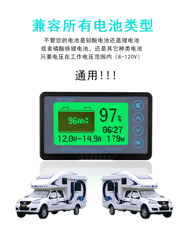 TF03K is a kind of high accuracy current type battery indicator, TF03K can test the voltage, current and capacity of lead-acid/lithium-ion battery, and display them with intuitive battery symbol and percentage. Users can know the state of battery in time. TF03K has function of memory.This battery indicator is suitable for mobile and portable equipments、ups、electric vehicles、ebike、 battery cars、balance cars、cleaning machines and so on.