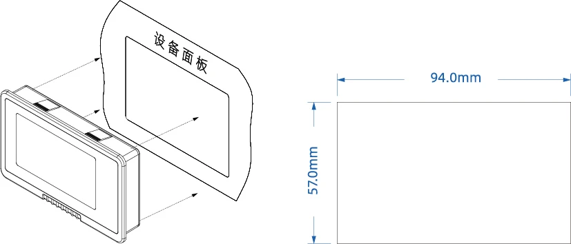 2. Then install the battery indicator from the front of the panel and place the indicator housing into the rectangular opening;
