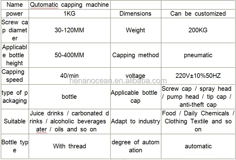 the parameter about the automatic capping machine