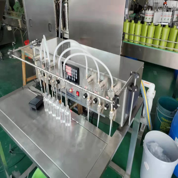 Full-featured, automatic and manual. Can be used to work on the assembly line. Can be equipped with multiple filling heads, commonly used models are: single pump, double pump and four pump. It can fill most types of liquids, including highly viscous liquids. Such as: a variety of pharmaceuticals, chemicals, oils, cosmetics, food and other non-particulate liquids.The filling amount can be adjusted from 1ml to 1000ml; the adjustment is convenient.