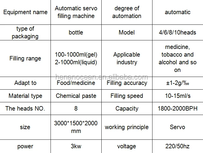 the parameter about the automatic filling machine