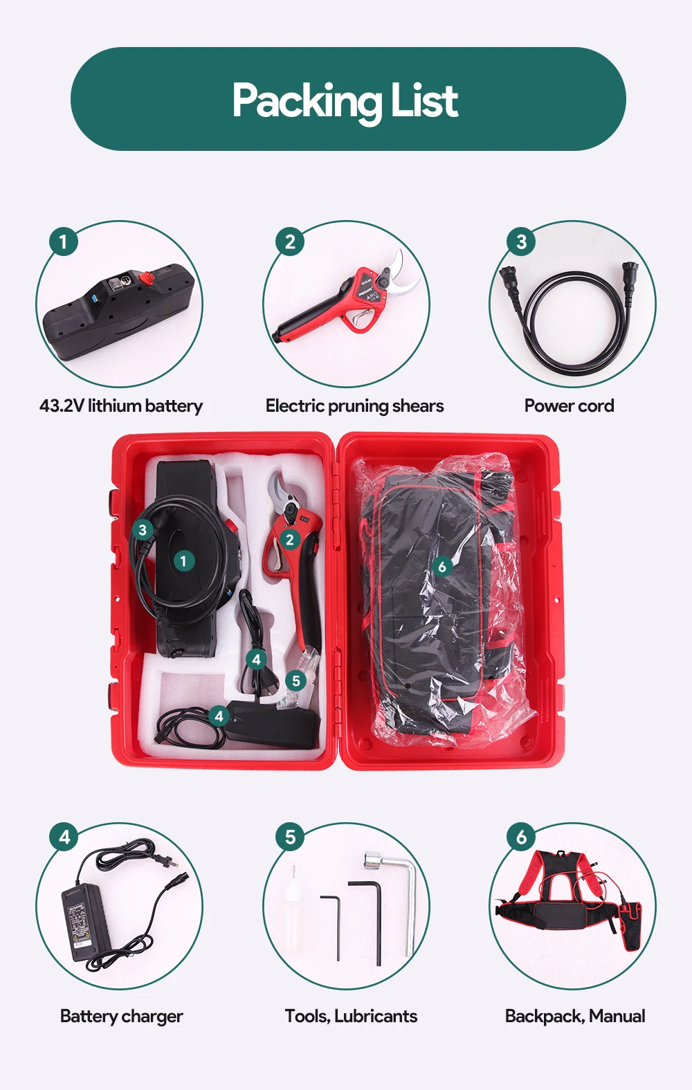 40mm electric pruning scissors electric scissors for pruning with progressive cut/finger protection/battery led on pruner