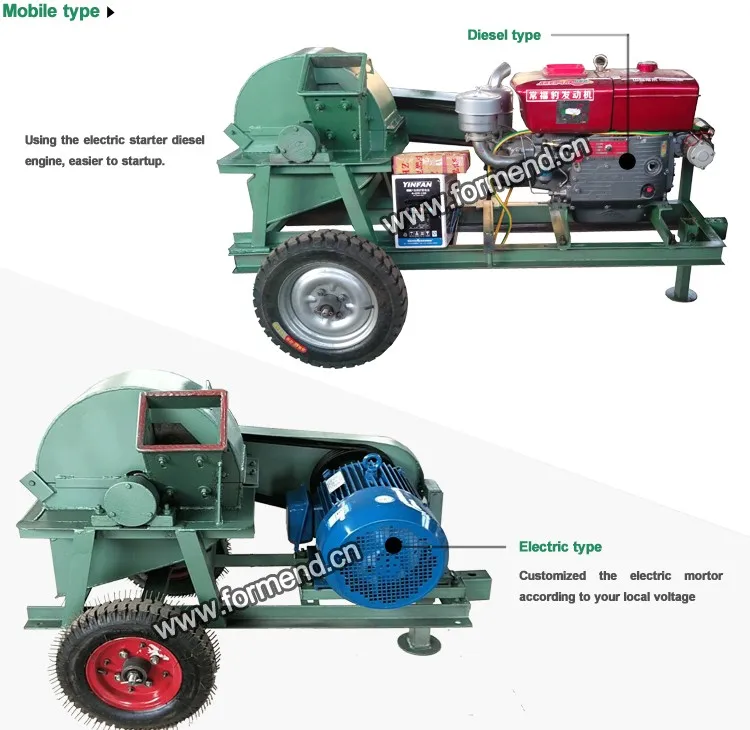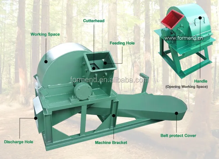 FORMEND MACHINERY wood crusher, is a wood garden processing machinery The machine can cut the maximum diameter of less than 45 cm of logs and all types of branches, tree trunks, small diameter wood, industrial wood scrap, rattan, etc.