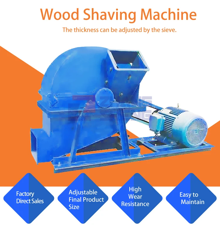 The wood shaving machine is mainly used for mass production of thin shavings with uniform thickness. The finished product is the same as the shavings produced by the wood factory. The wood shaving machine adjusts the size of the finished shavings by adjusting the blade angle and the screen diameter. To adapt to various needs.
