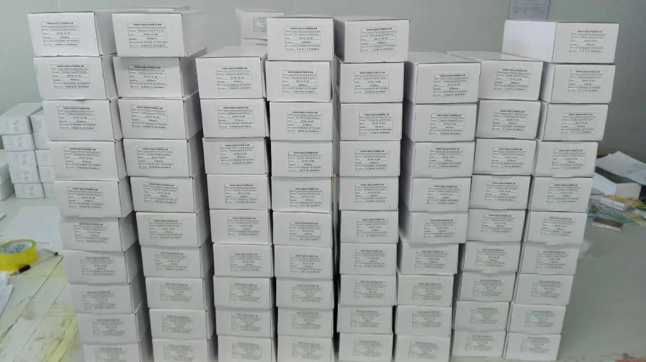 Q: How is your quality? A: With a Heidelberg 5-color offset printing machine, and cards are printed exactly according to your design, you don’t have to worry about the printing quality. If there is an extremely high requirements in color matching, we will use silkscreen printing, and you will need to provide a pantone value or a sample card for our reference. Every card would be checked by machinery or manually to make sure they are prefect before dispatched.