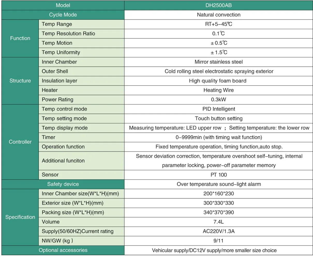 | Model Number: | DH2500AB; | Inner chamber size: | 230*200*160mm; |
