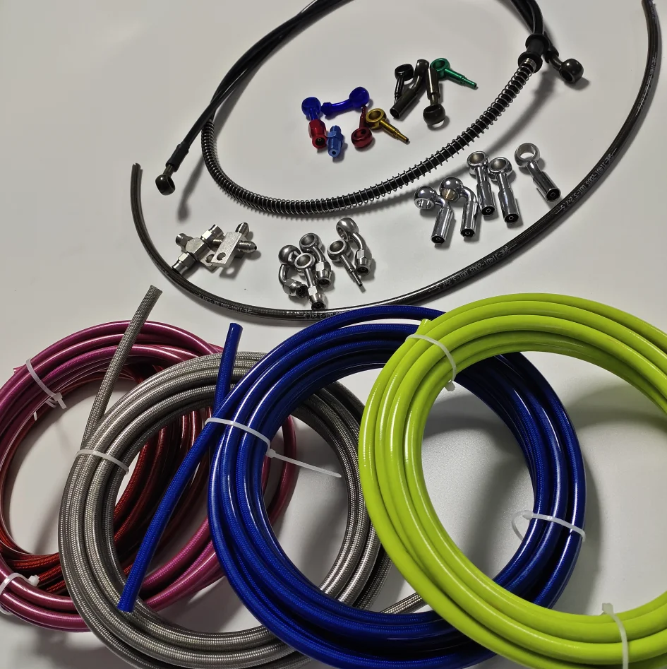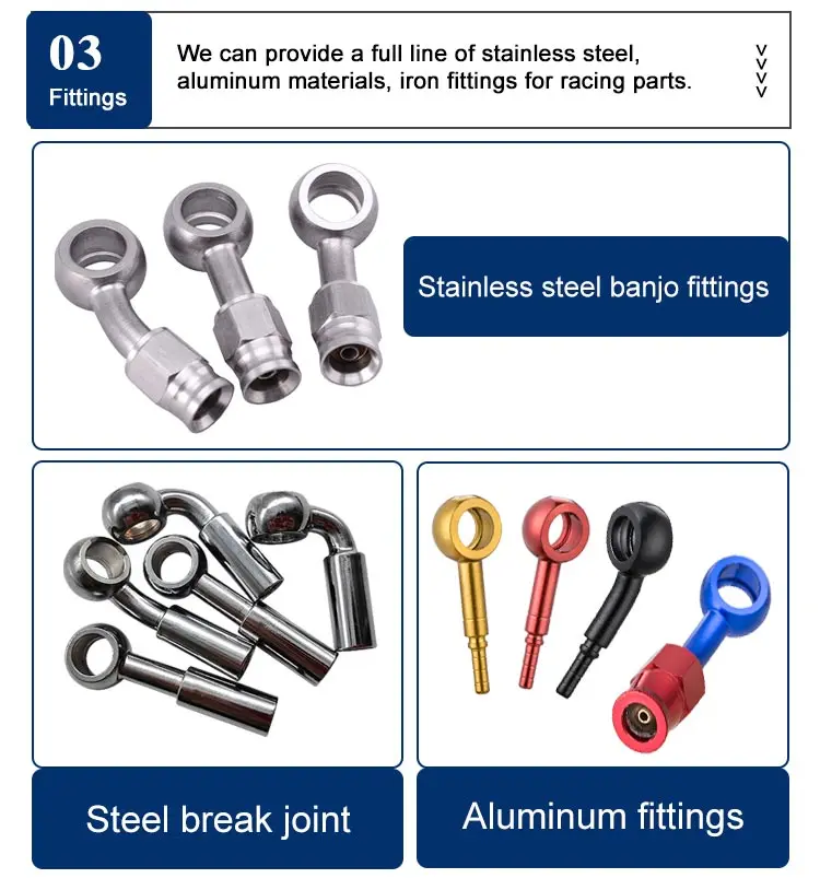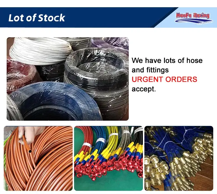 We can provide a full line fo stainless steel /Aluminum fittings and degree An3 Nylon/PTFE+Stainless Steel+PU covered Banjo Hydraulic Brake Oil Hose Line.