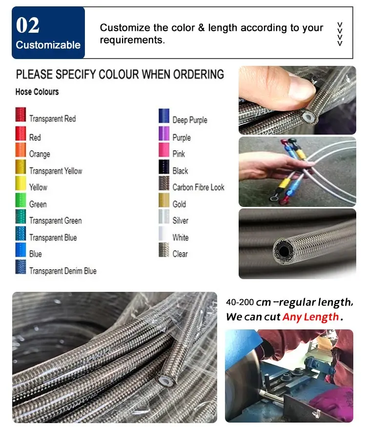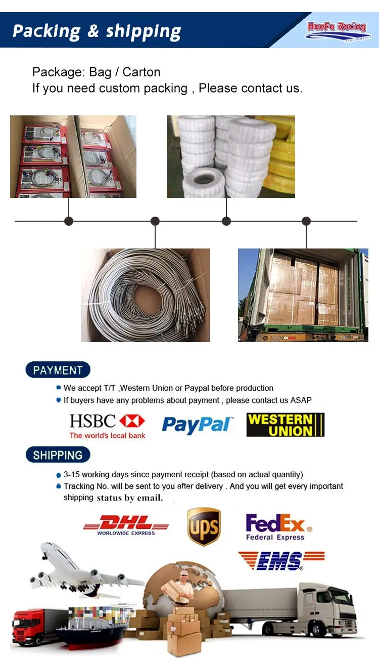 Application:An3 3-an brake line brake hose universal using for Most of the Motorbikes, enduro, motocross hydraulic brake system, clutch lines system.