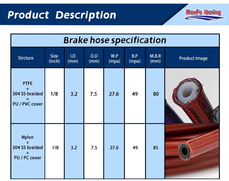 | Structure: | Inner tube, Reinforcement, Cover; | Type: | Braided Brake Hose; |