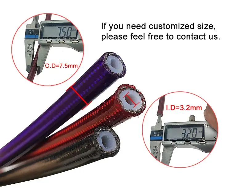 Custom an3 3.2mm 1/8'' 7.5mm universal motorcycle stainless steel braided ptfe clutch brake tube line fuel hose