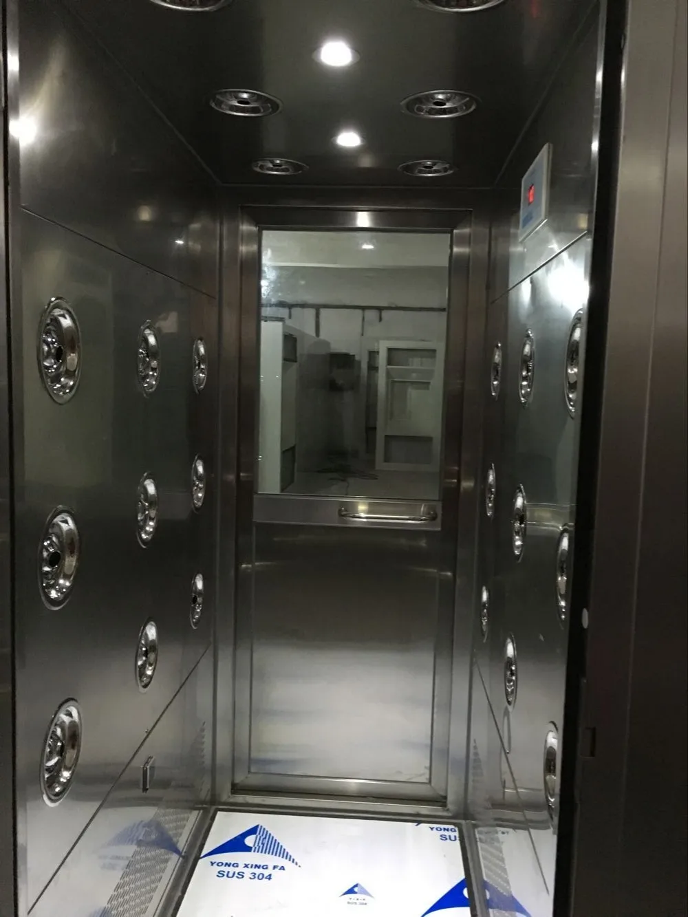 the operator is maximum dust source in working space , Air shower room, a purifying equipment being able to clean the dust adhering to the surface of human body and articles, preventing the unclean air invade into the clean room. To meet the cleanliness requirement of clean room with the help of air-conditioning system in the clean room.